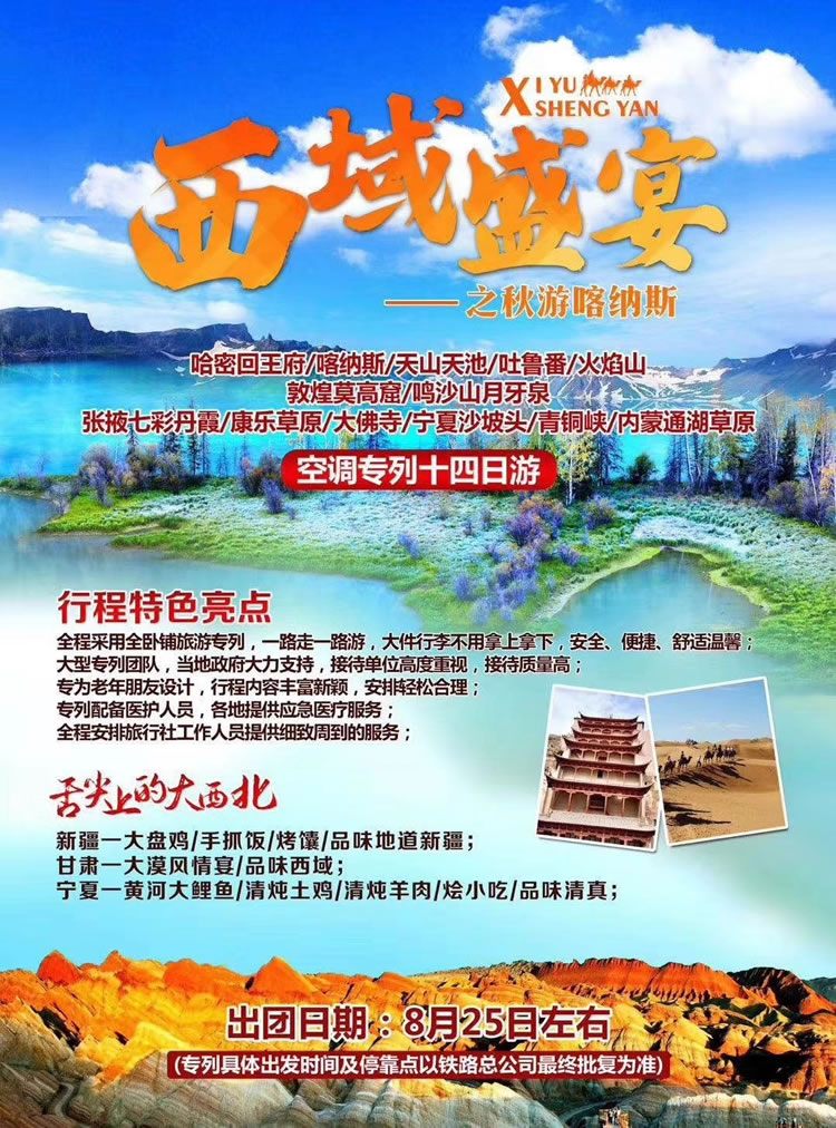 綿陽中旅假日旅行社于2019年6月30日在綿州開元酒店召開胡楊林、新疆和漠河專列推薦會,現(xiàn)場座無虛席、受到廣大客戶熱捧。同時還推出新疆專列、華陽避暑專線報名熱線:0816-2228499 。