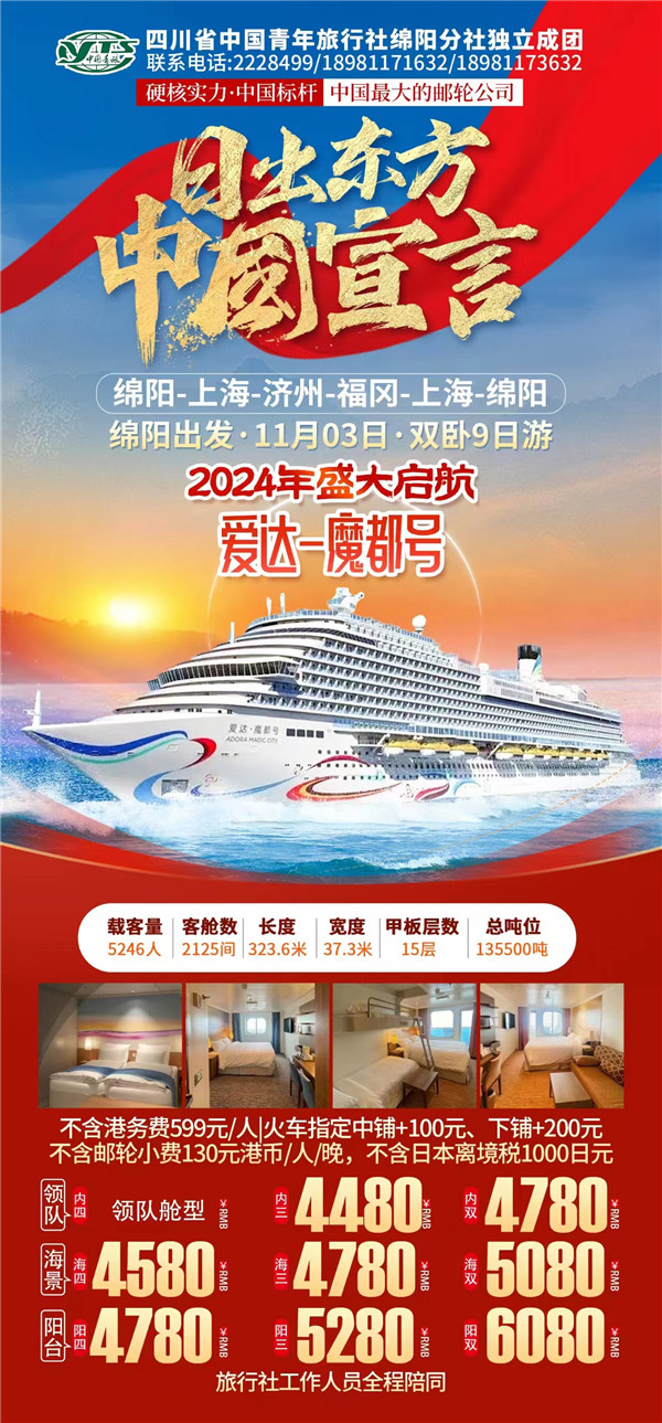 綿陽中旅假日旅行社于2024年10月9日在市工會大廈成功舉行“愛達(dá)·魔都號豪華郵輪9日游”旅游線路推薦會。現(xiàn)場主持人向到場的嘉賓們詳細(xì)的介紹了濟(jì)州、福岡等地的風(fēng)土人民、美食、美景以及出游的相關(guān)注意事項(xiàng)等內(nèi)容,受到了嘉賓們的熱烈歡迎和關(guān)注。服務(wù)熱線:0816-2228499/2238477 。